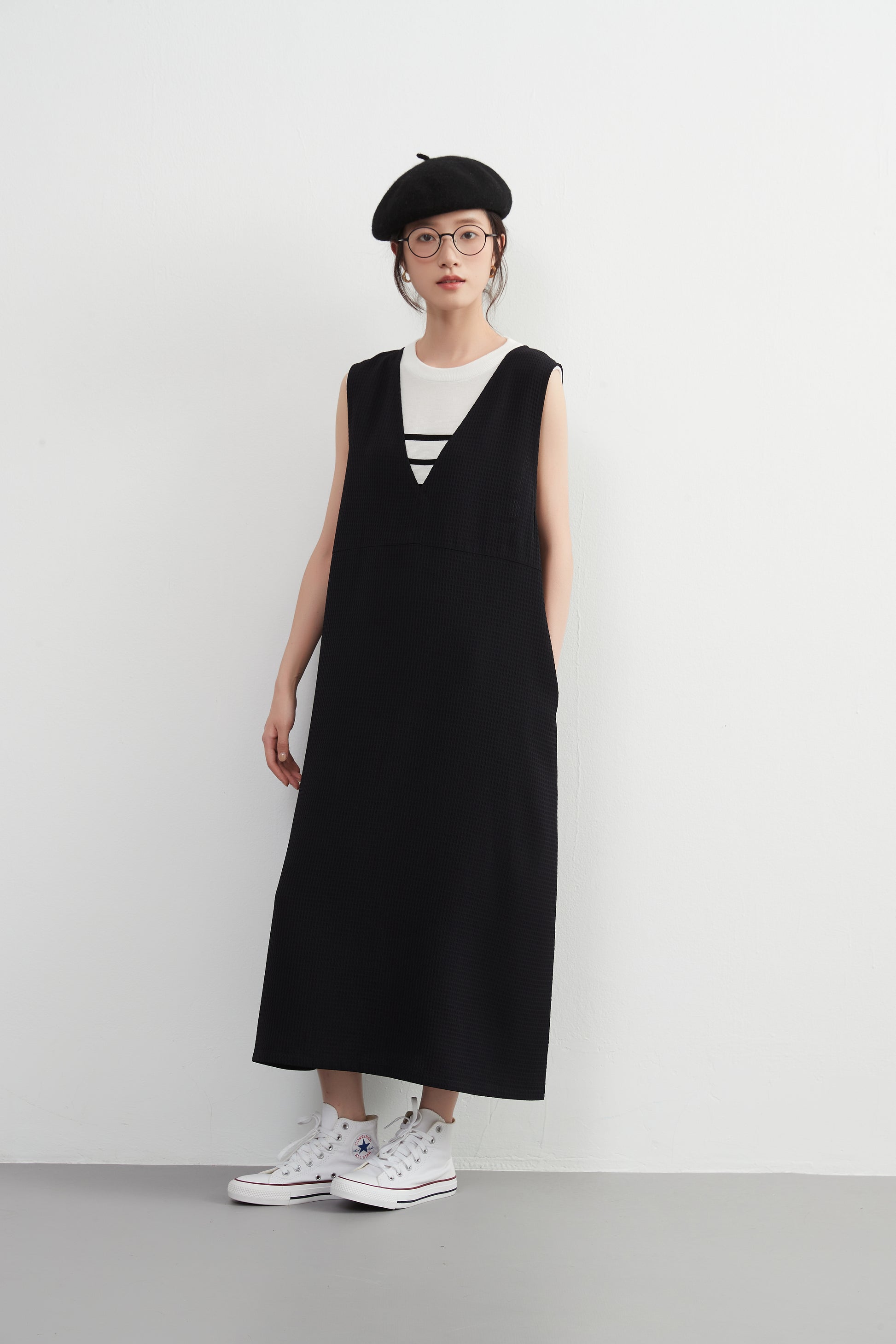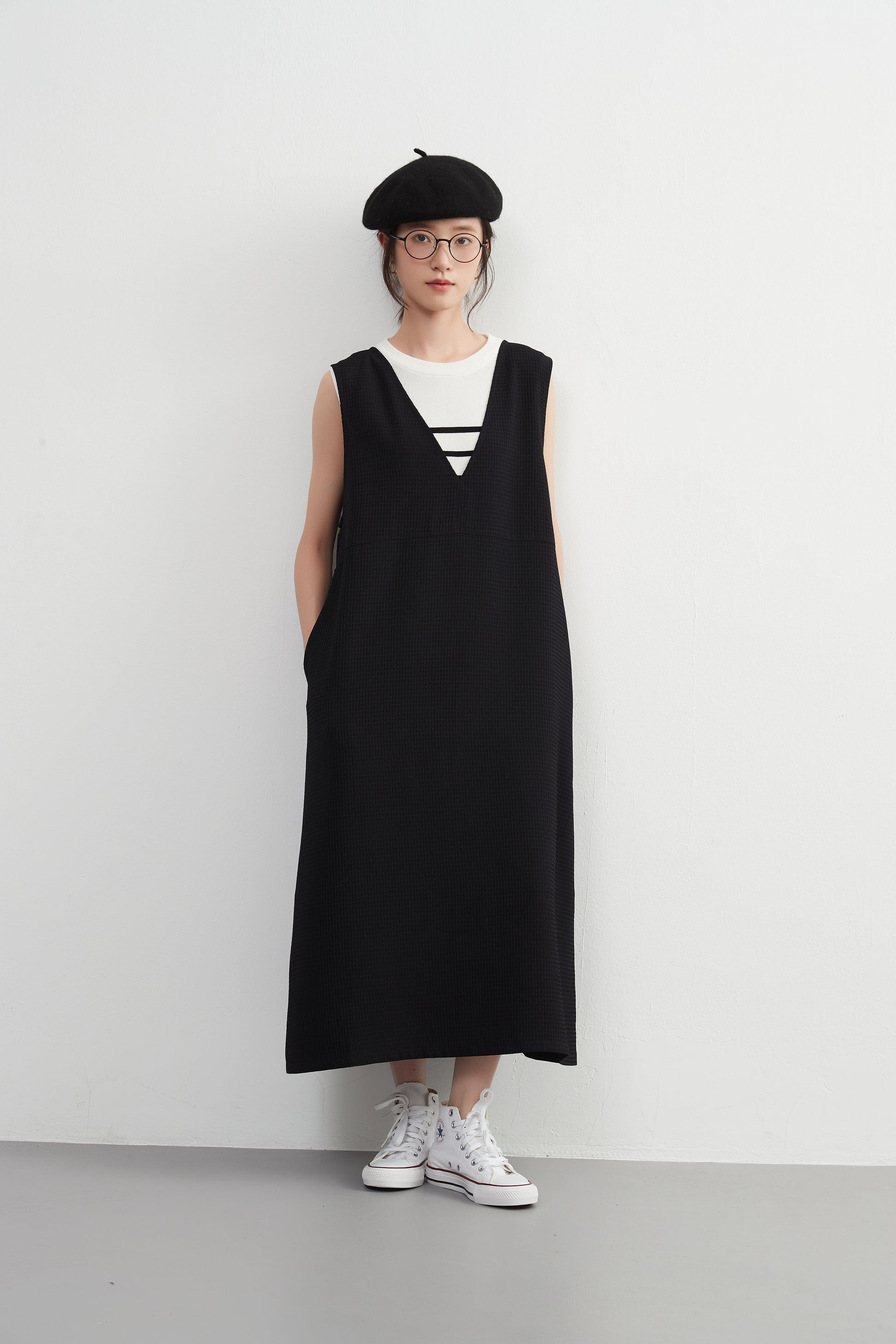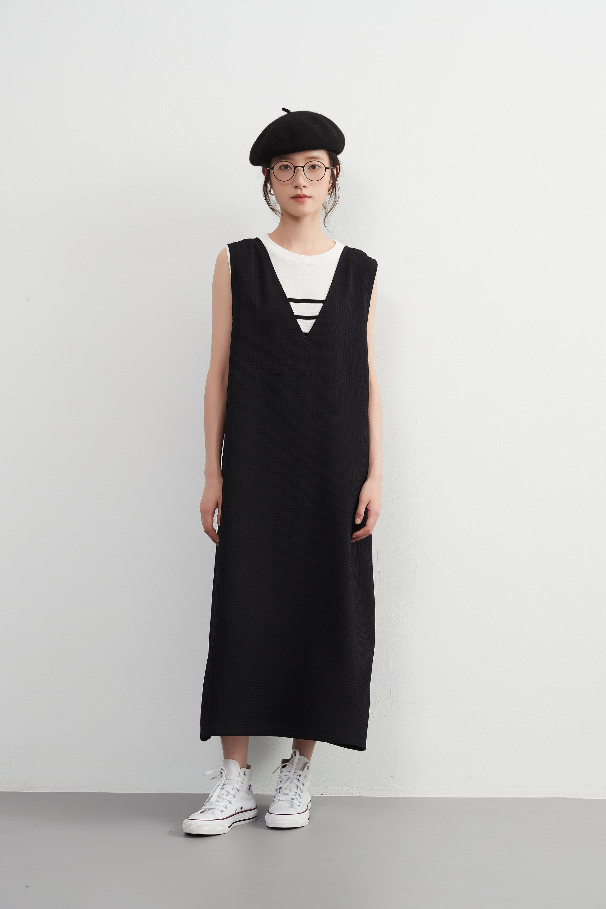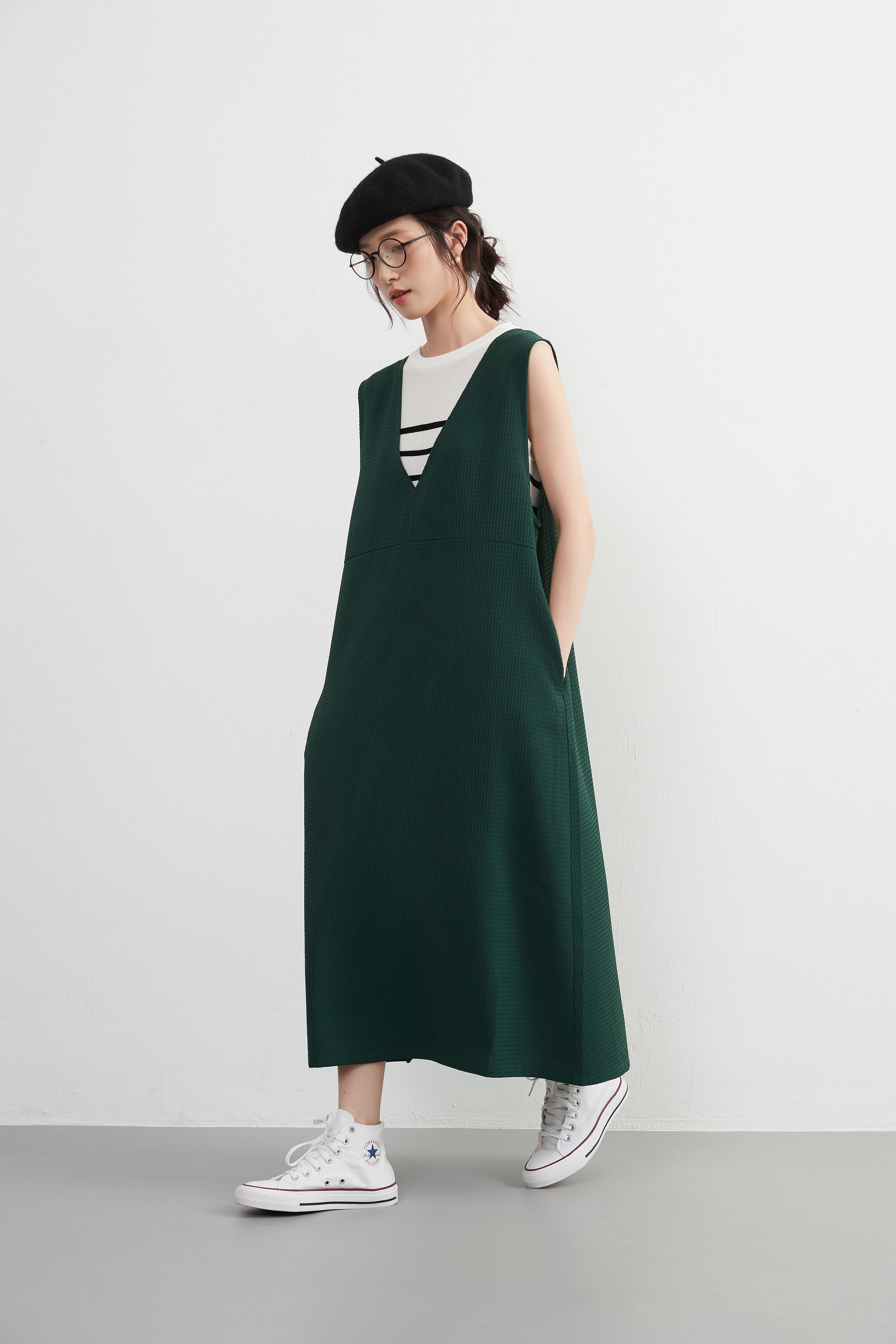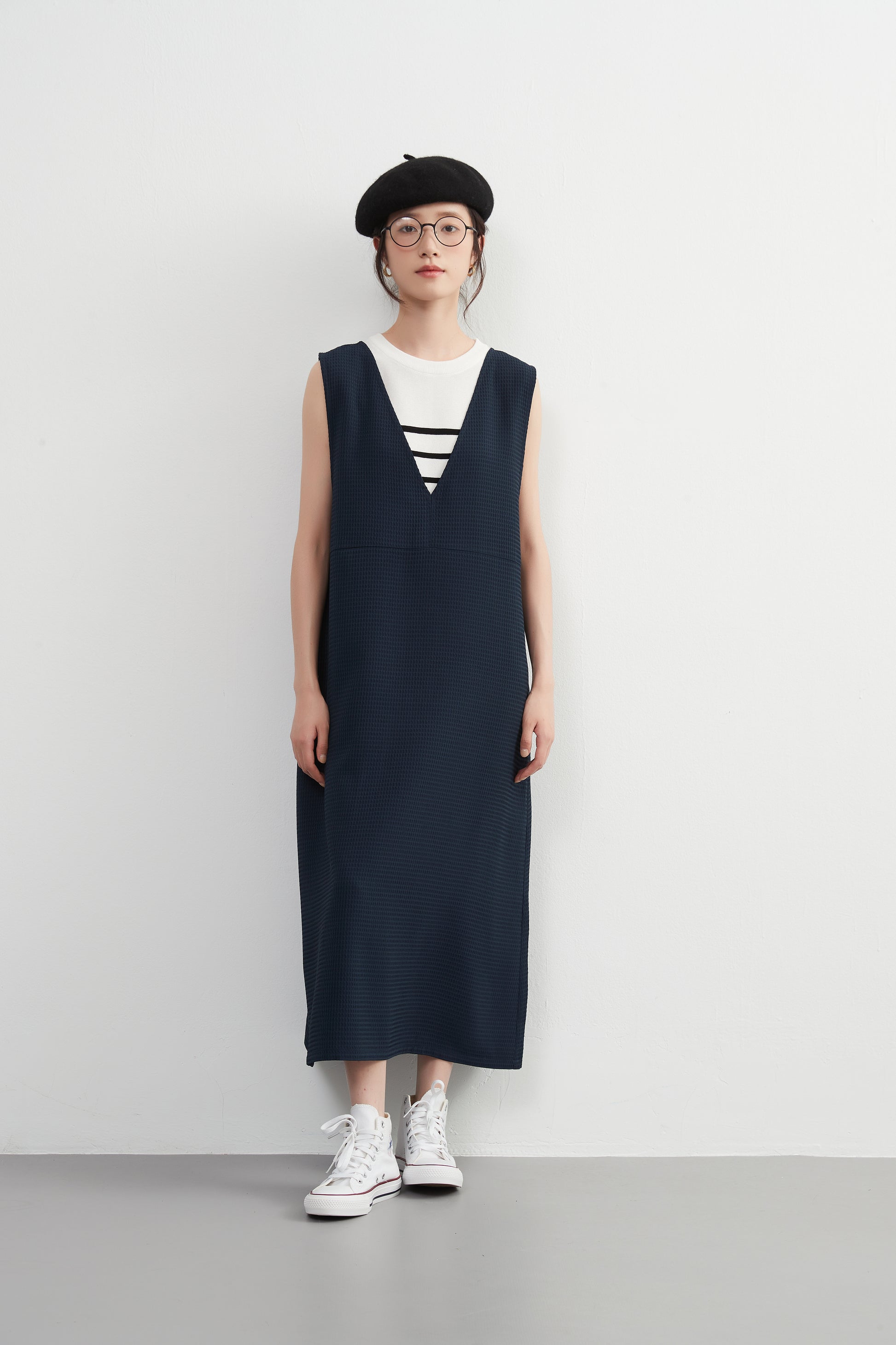This set combines a jumper skirt made of waffle-patterned fabric with a bolero-style jacket. The loose silhouette combines a relaxed and stylish look. The bolero-style jacket is light and easy to move in, making it perfect for the change of seasons. Each item can be easily coordinated on its own.