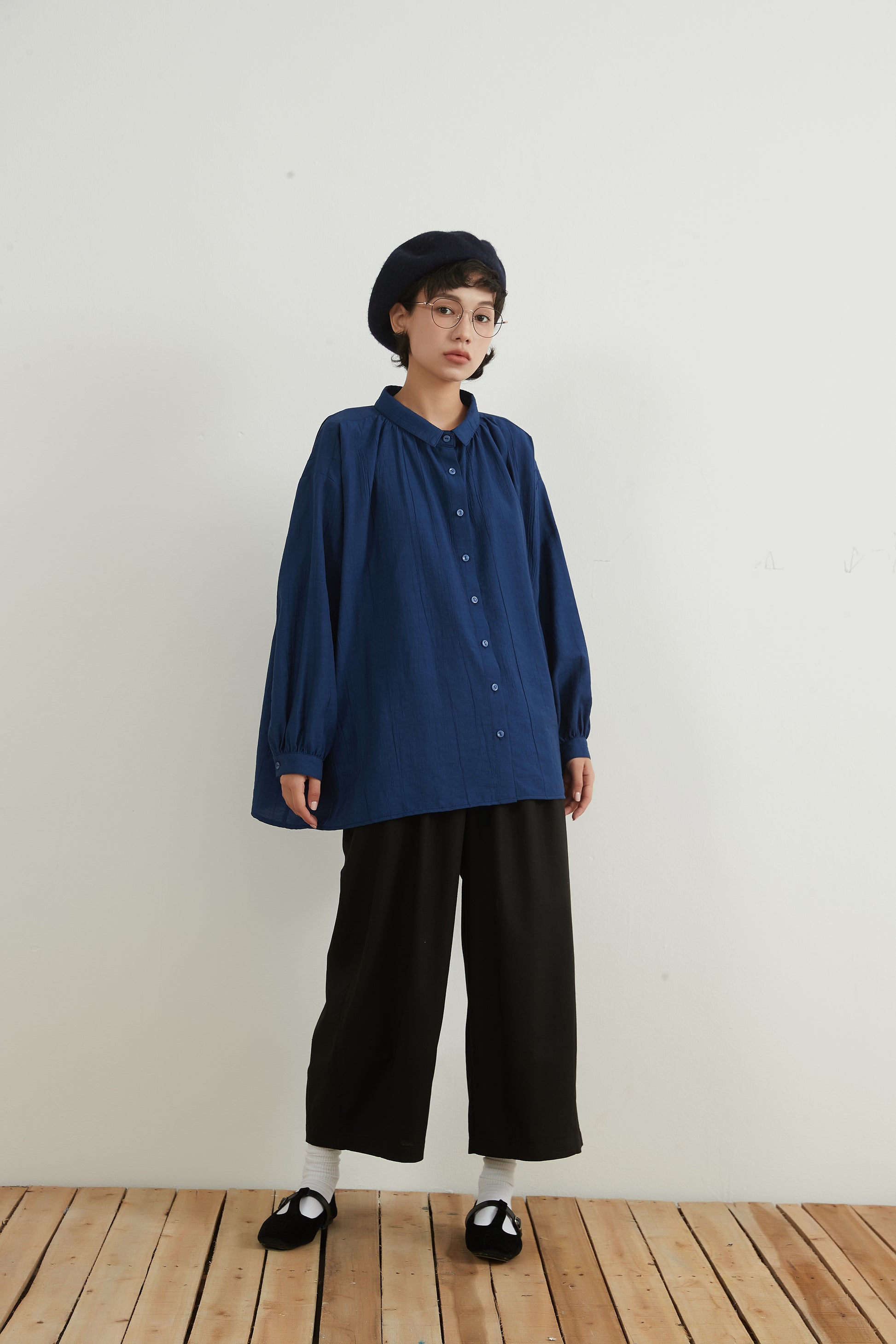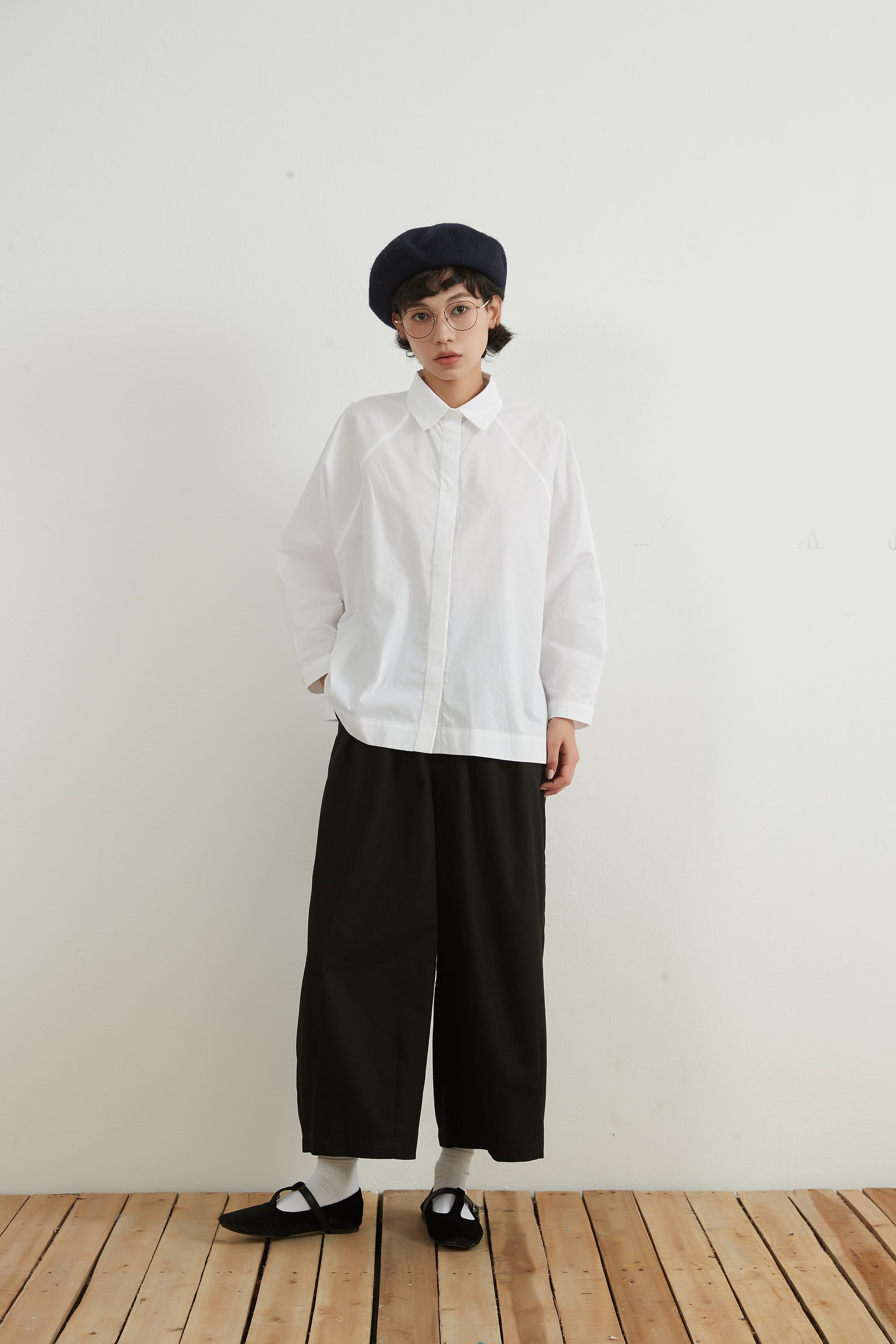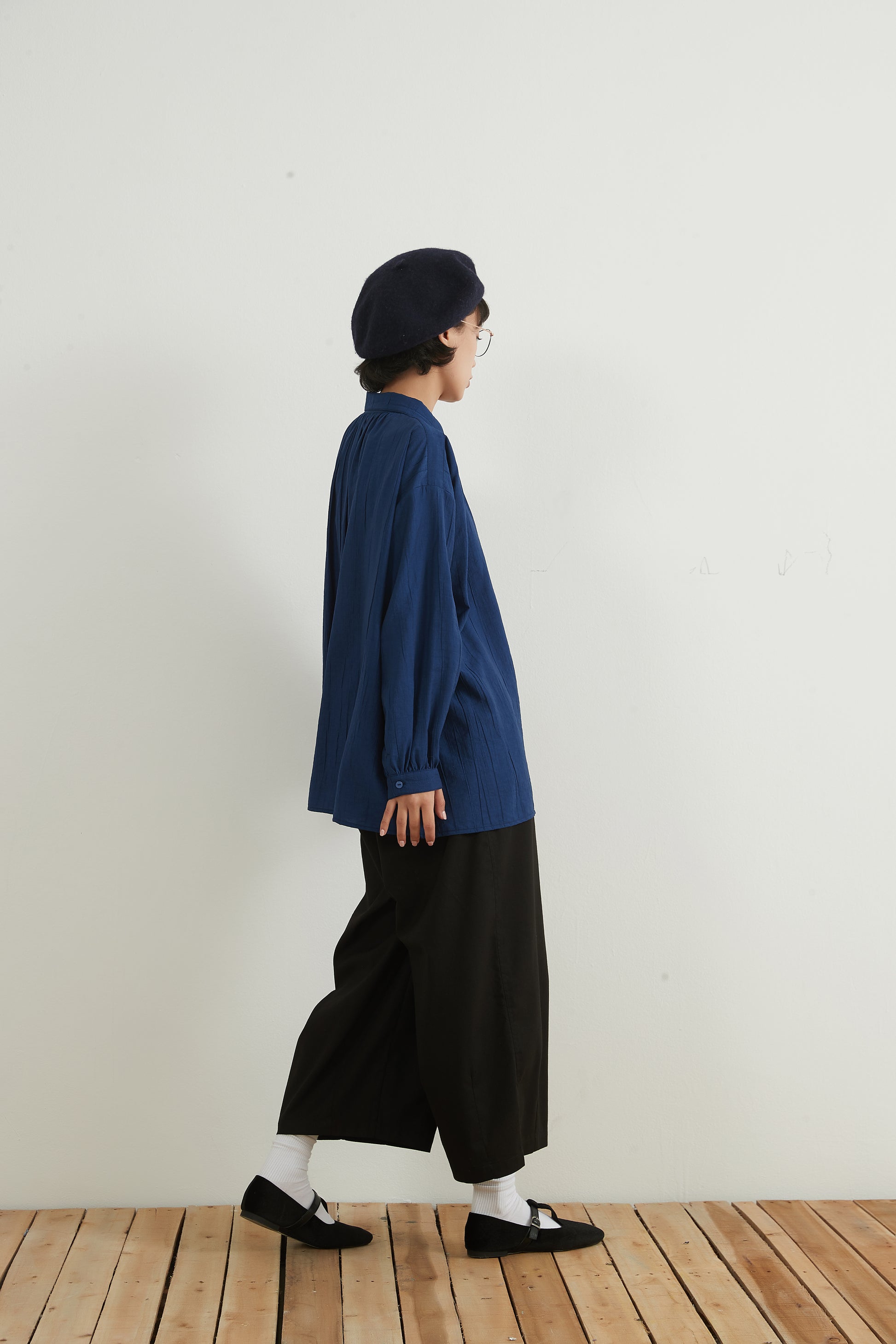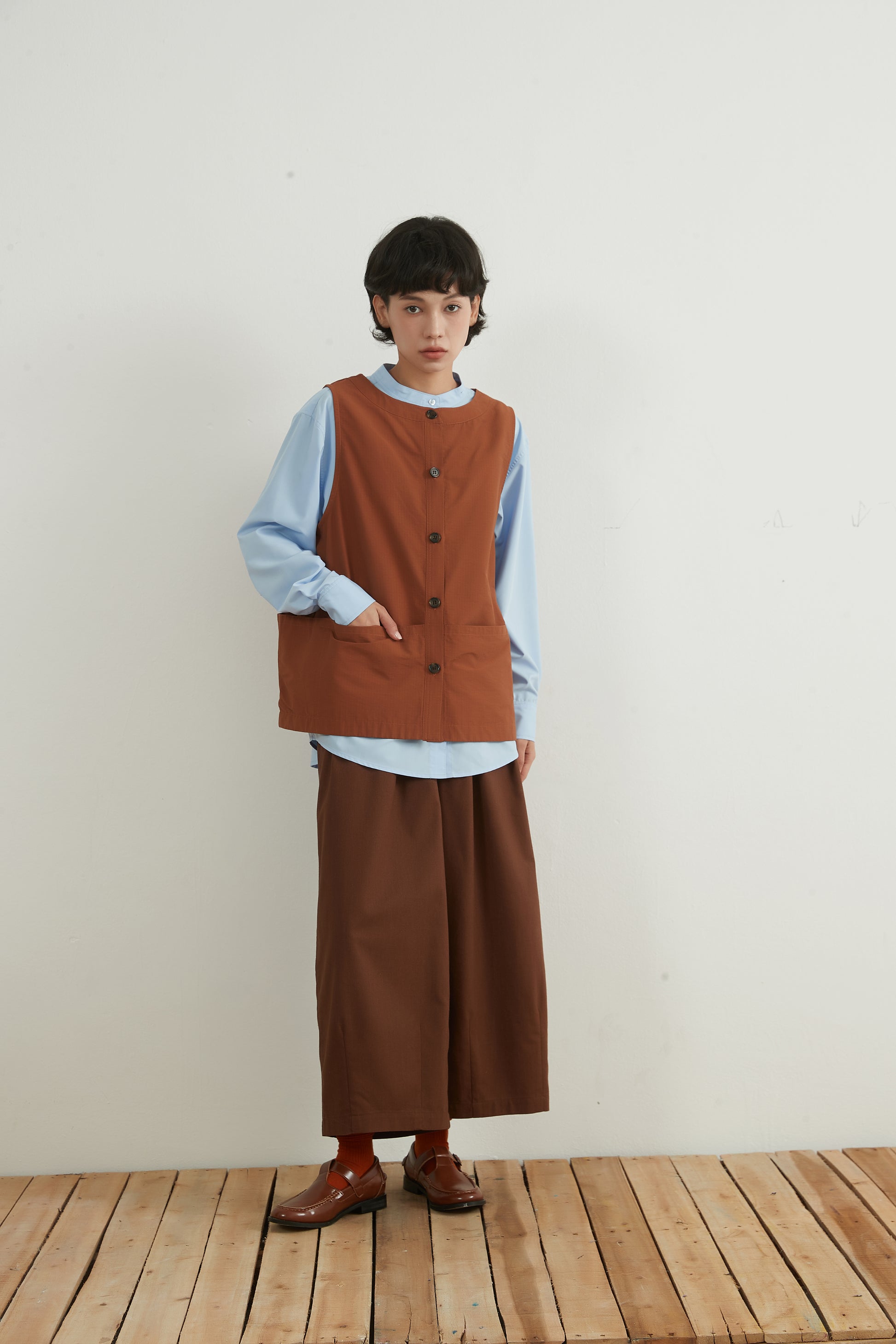 Wide elastic waist pants with a cocoon silhouette. These pants have a voluminous wide leg and are extremely comfortable to wear. Made from a linen and cotton blend, they are breathable and can be worn for a long time from spring to autumn. Available in two colors, black and brown, which are easy to coordinate with other items.