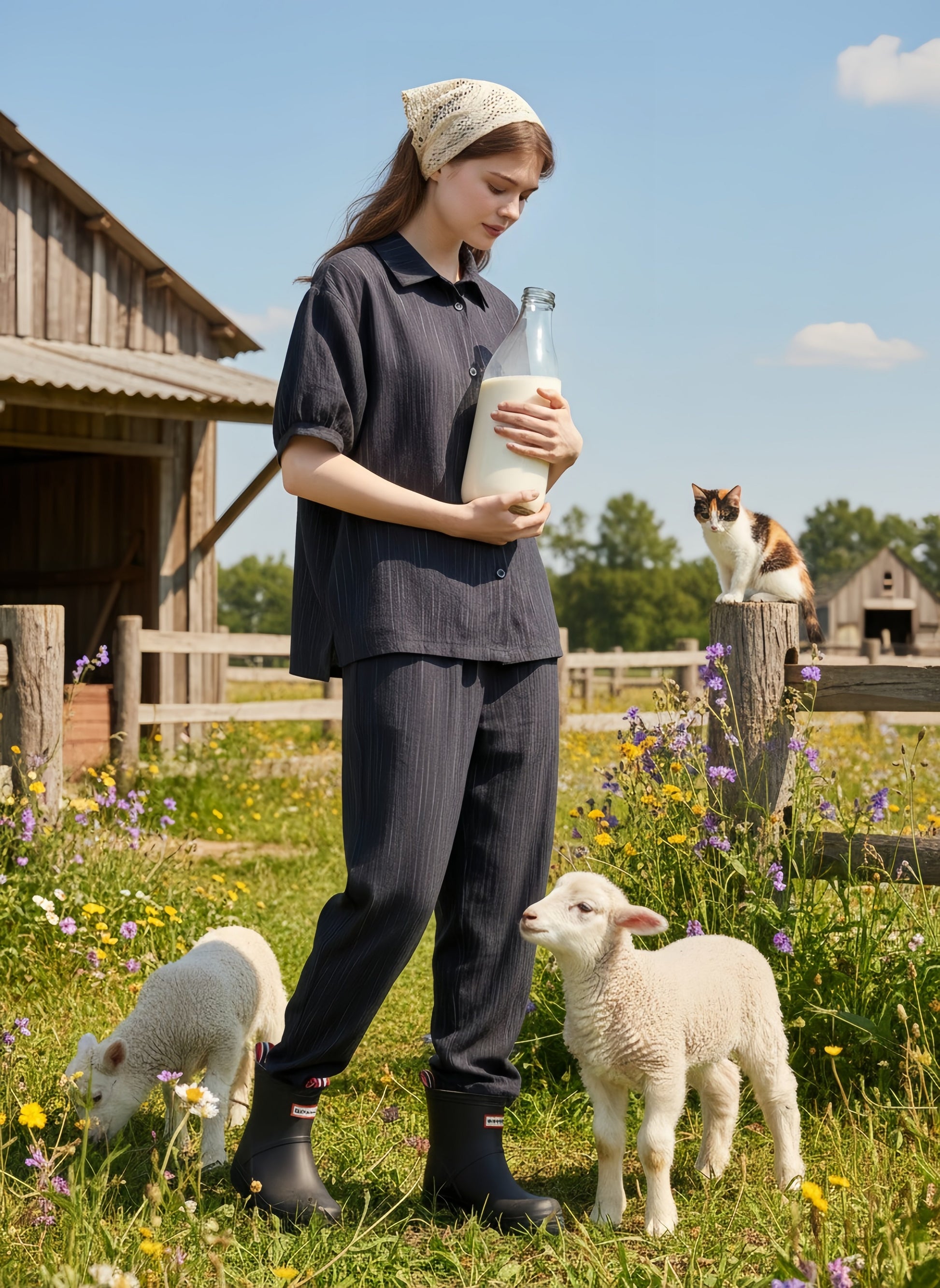 ブラウスは程よいルーズなシルエットで、体型をカバーしながらも女性らしい雰囲気を醸し出します。一方、コクーンパンツはゆったりとした履き心地で、動きやすさを追求したデザインです。パンツは総ゴム仕様、ポケット付きです。