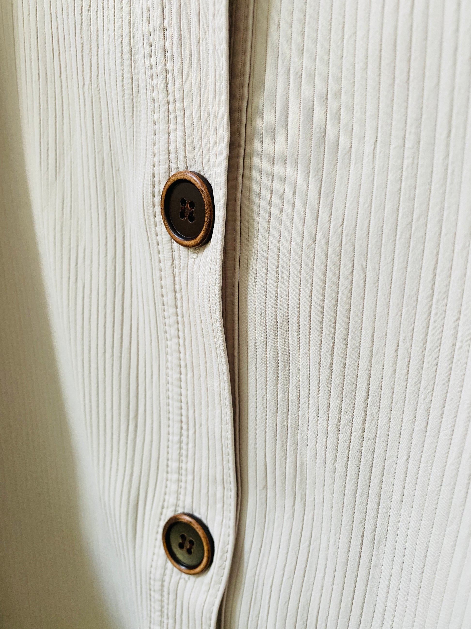 しっかりとしたピンタック織りの生地を使用し、軽量ながらも耐久性があります。肌触りが良く、季節を問わず快適に着用可能です。しわになりにくい素材で、お手入れも簡単です。