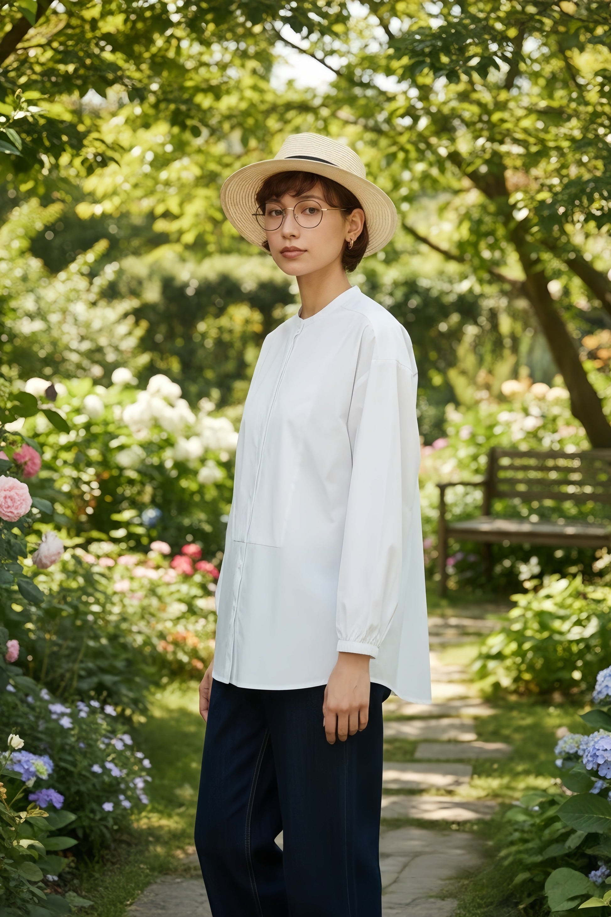 #ononesown#コットン100%#コットン100%シャツ#コットン100%ブラウス#綿100%ブラウス#サステナブル#エシカル#天然素材#フライプラケット#袖ギャザーブラウス#ゆったり#FREEサイズ#エフォートレス#きれいめ