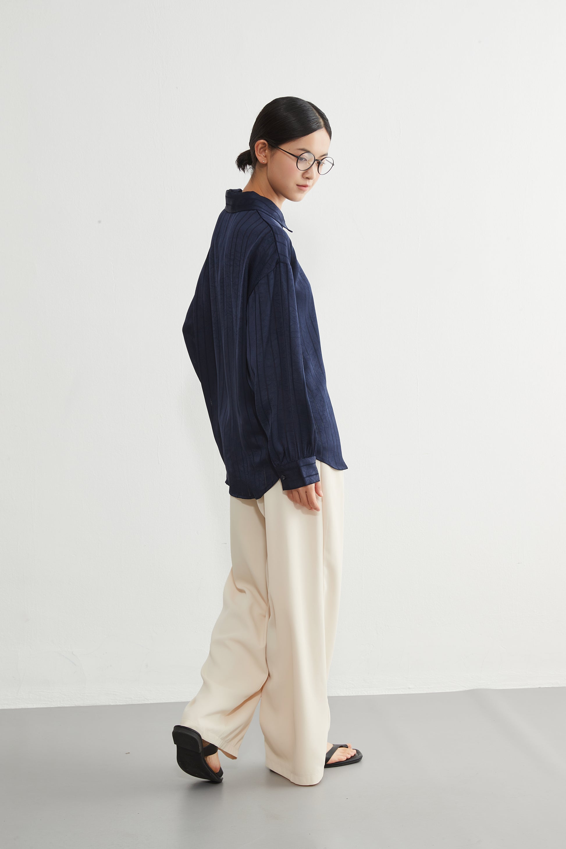 KNGC628・アイレット風ジャカード織りきれいめ艶感ハンサム長袖シャツブラウス