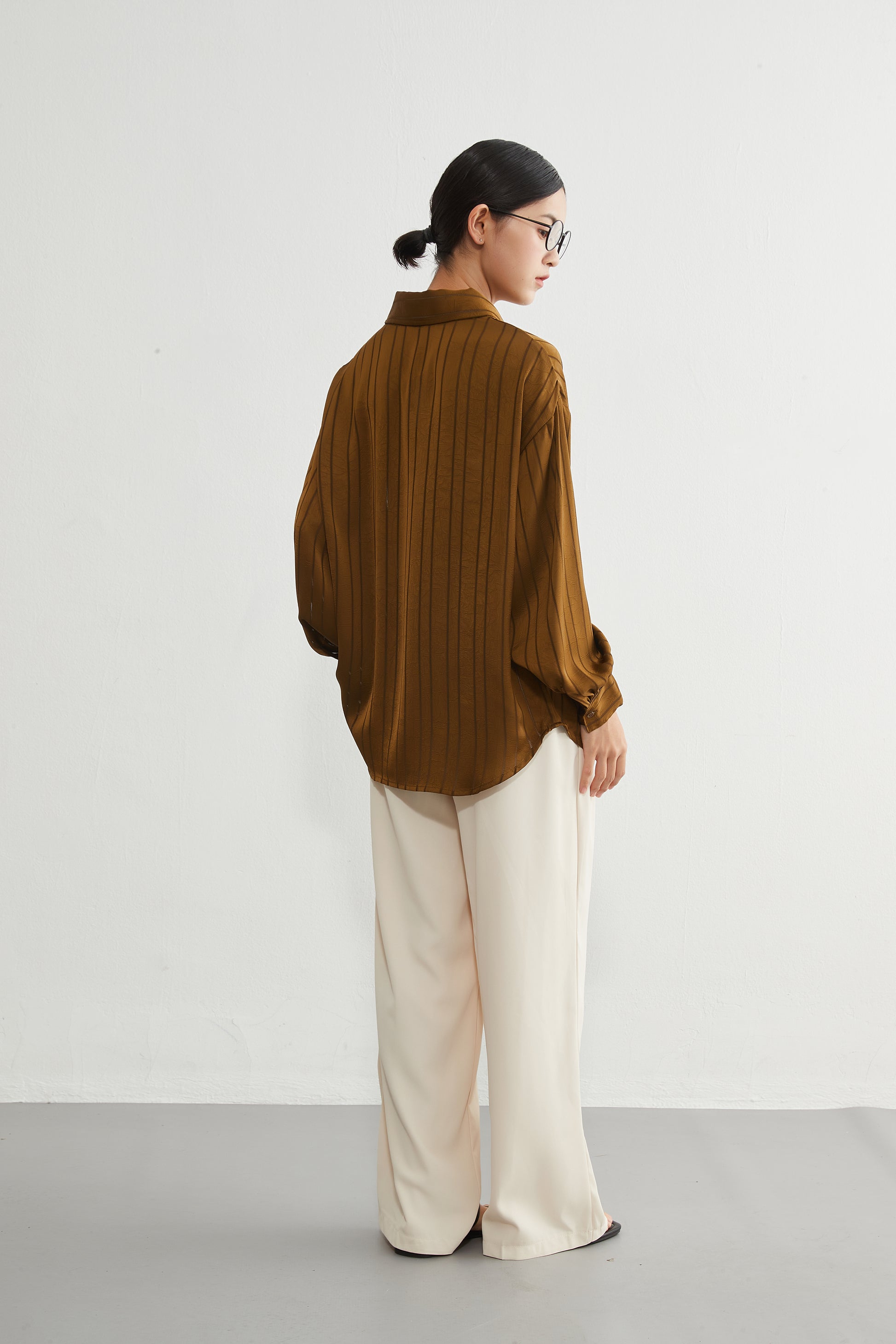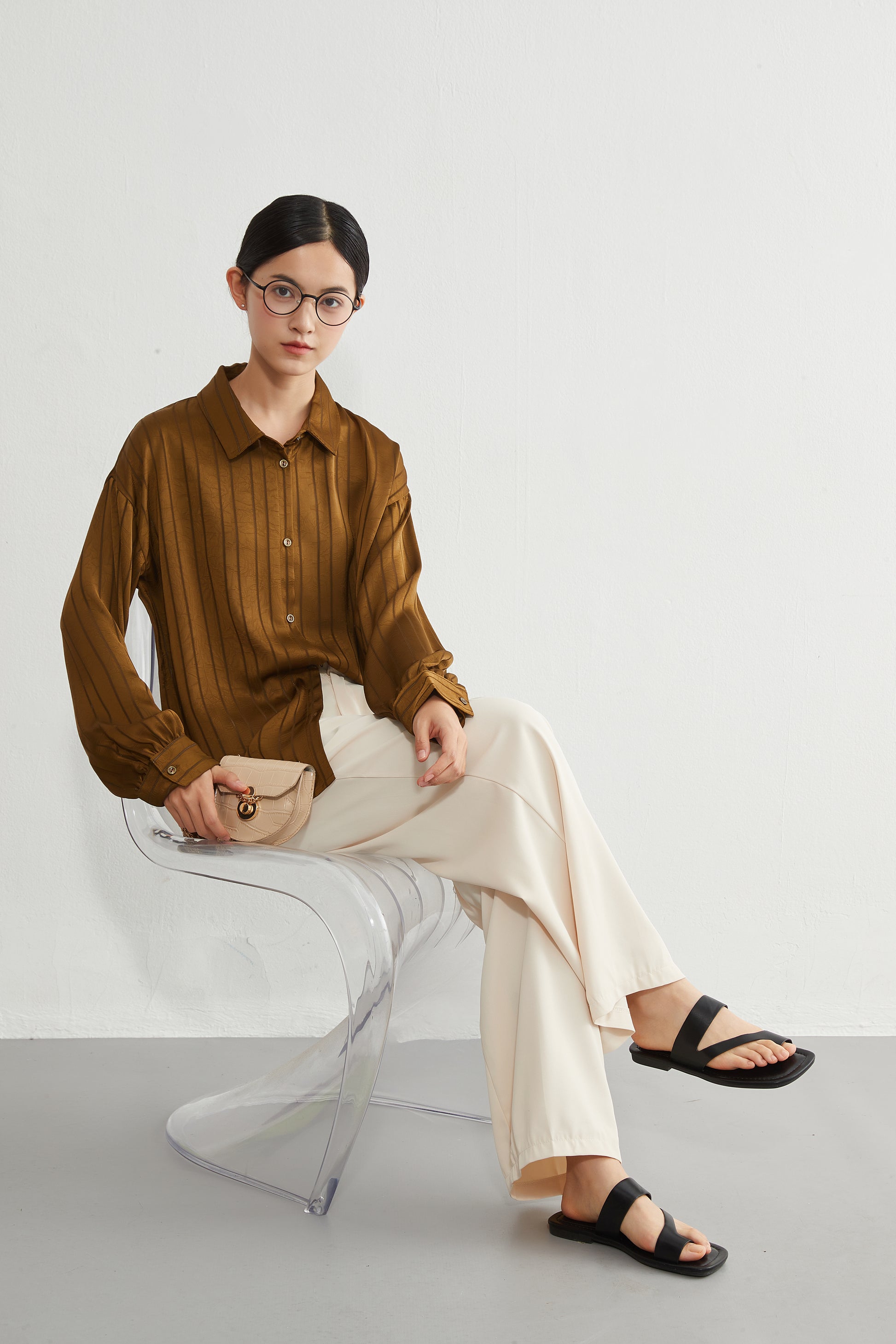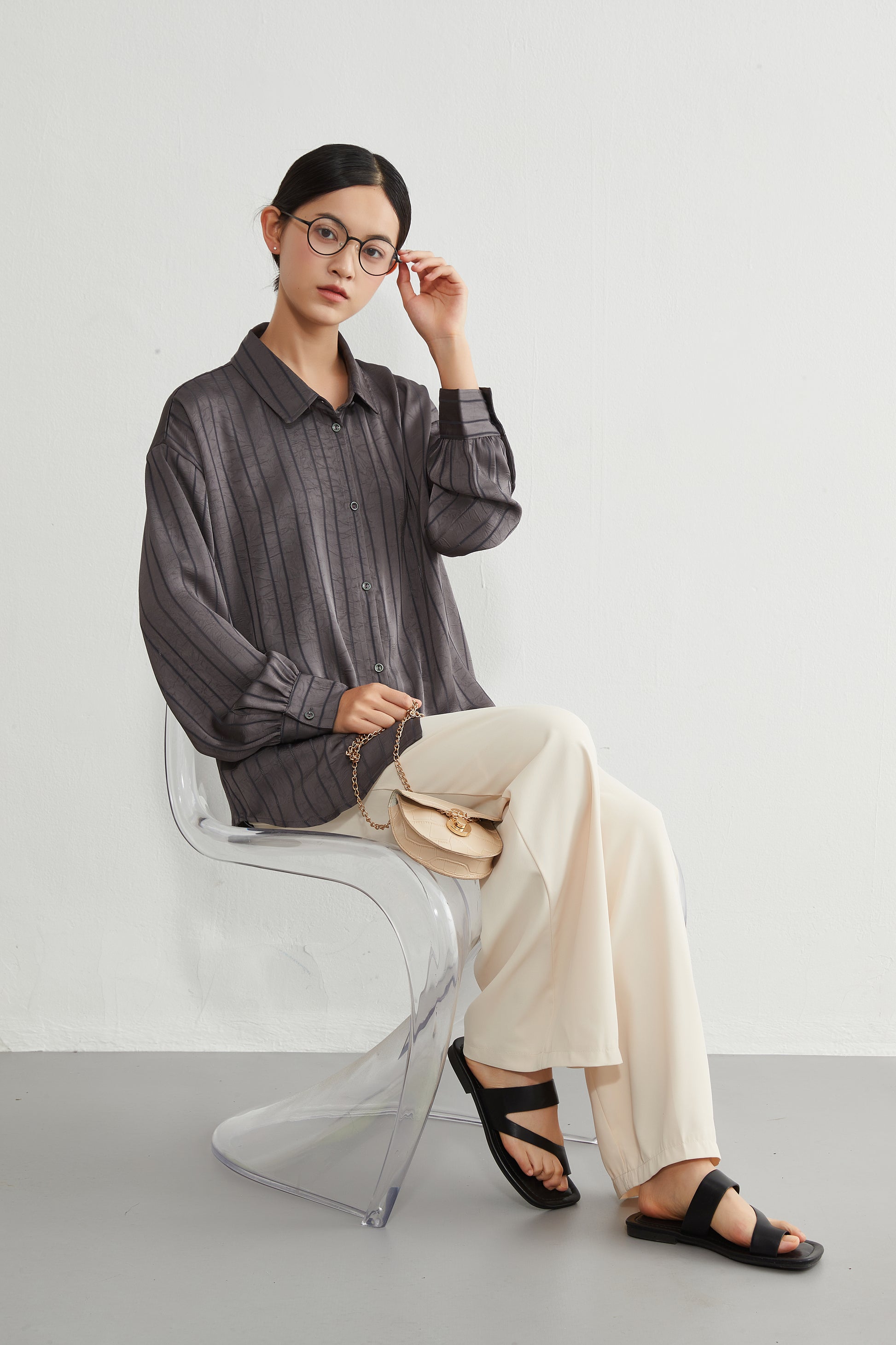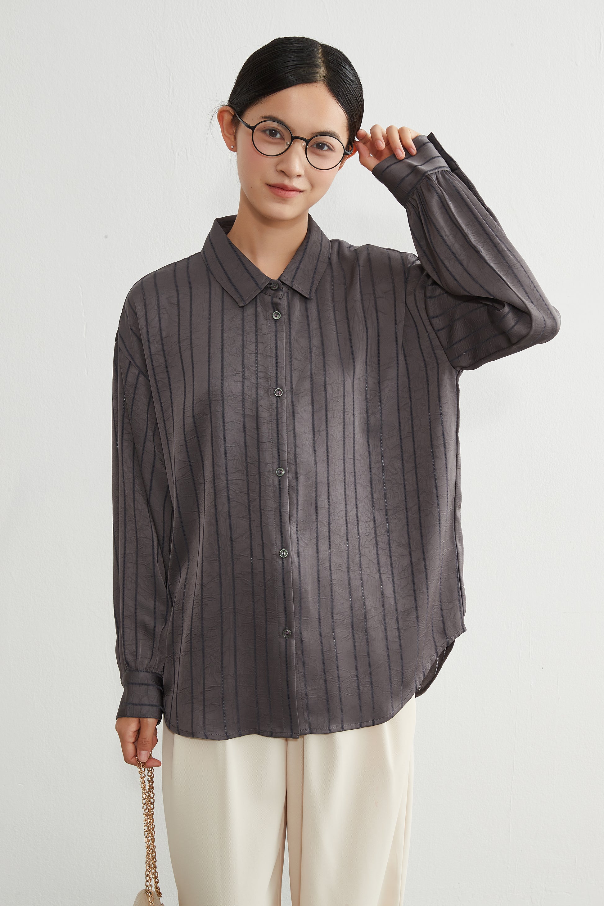 「一枚でも羽織りでも◎高見え素材の長袖シャツブラウス」