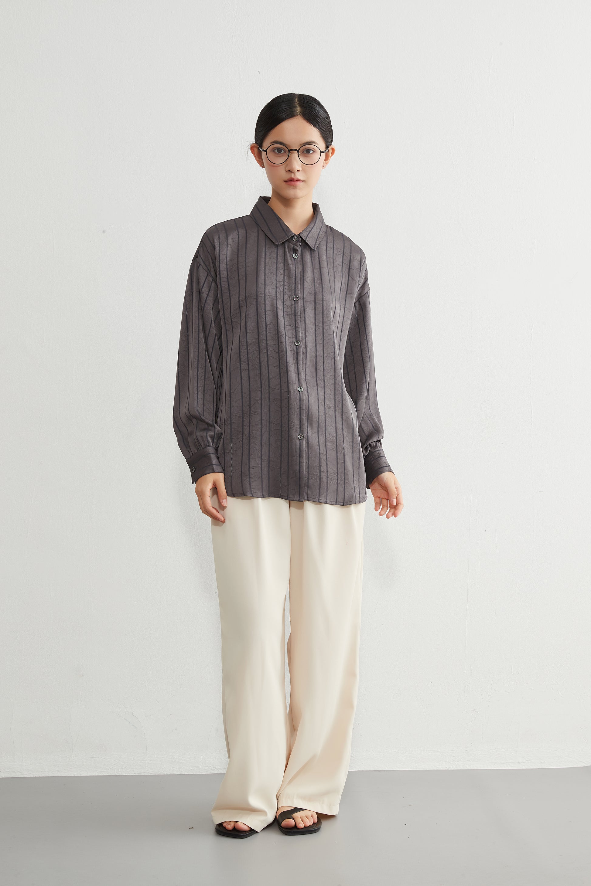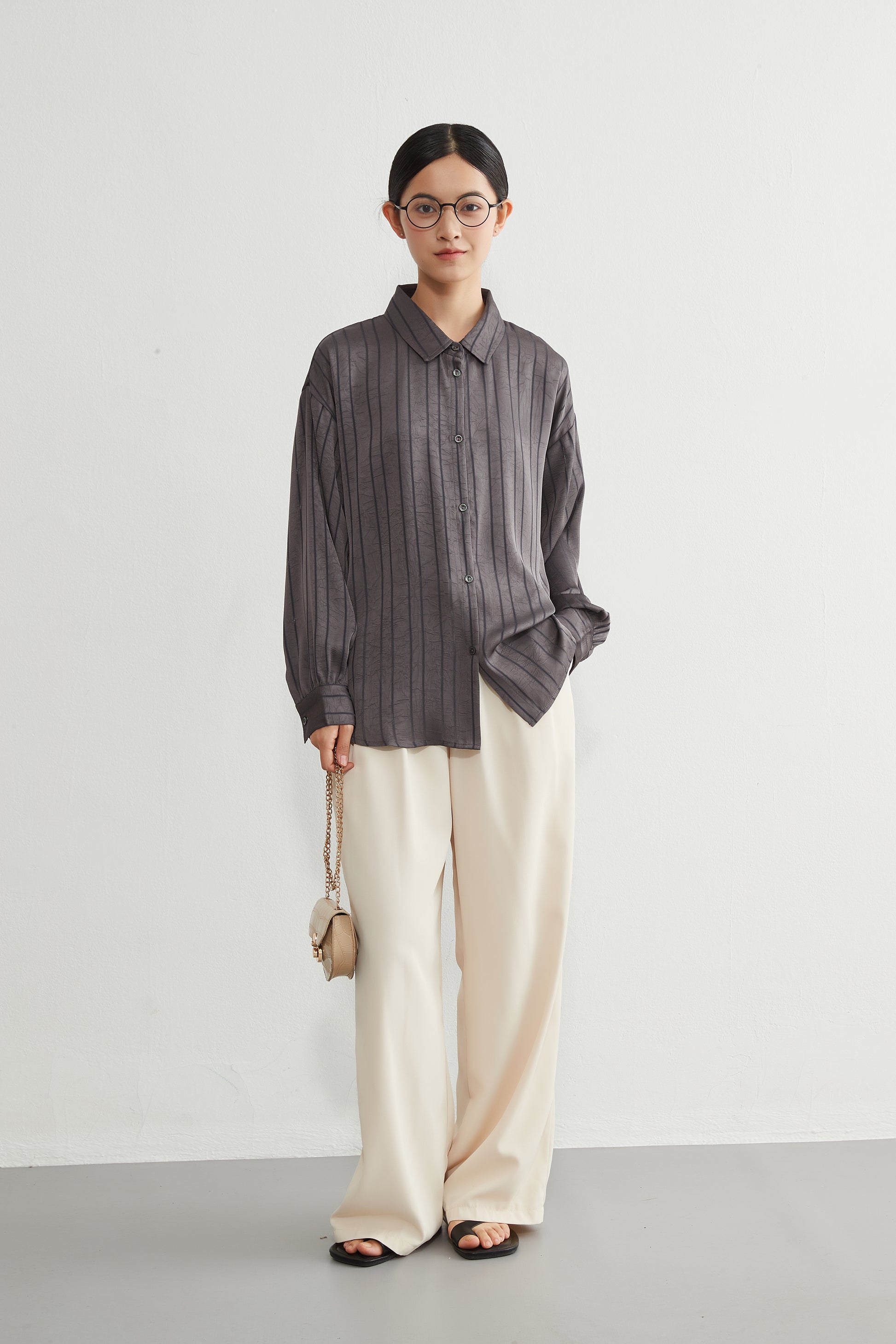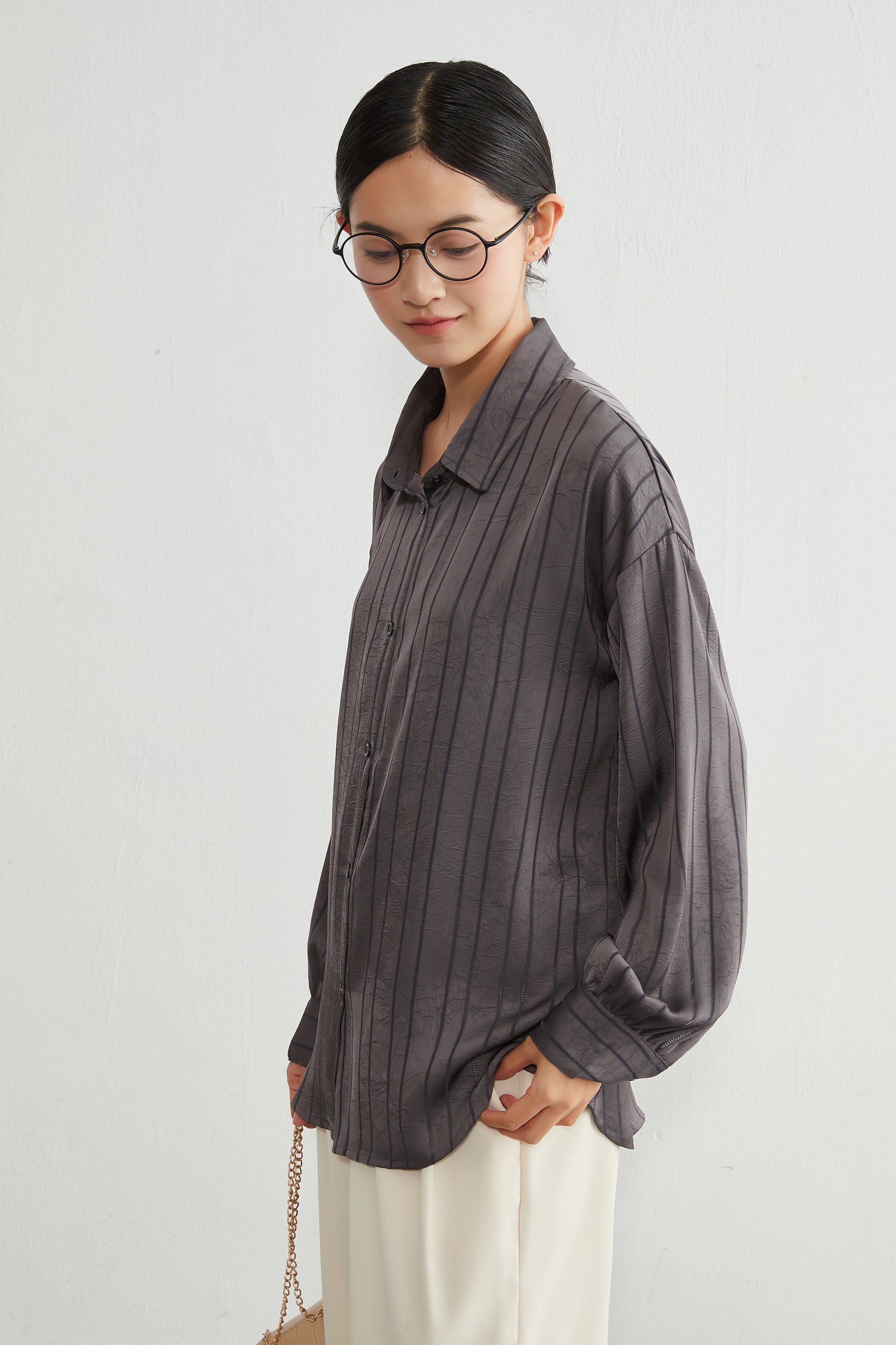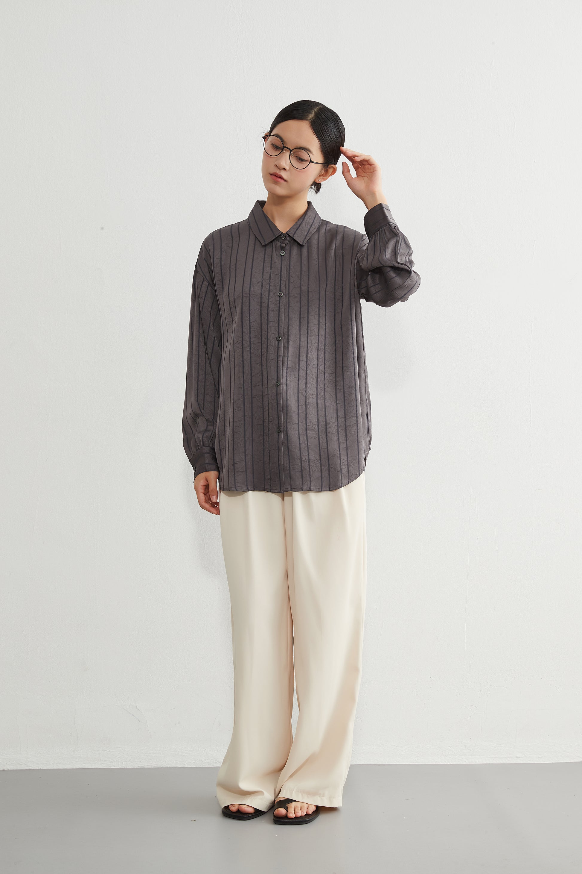 「一枚でも羽織りでも◎高見え素材の長袖シャツブラウス」