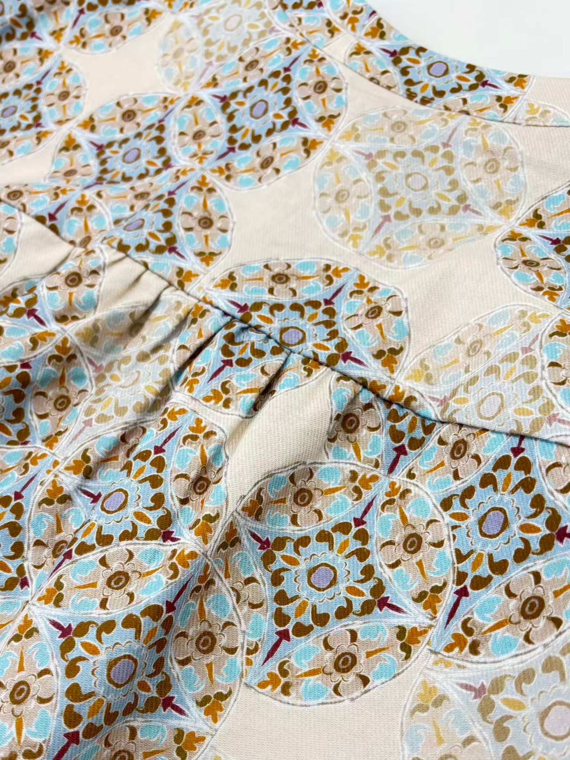 KNR670・綿プリントピンタック長袖シャツ・アンティークモロッカン柄ブラウス