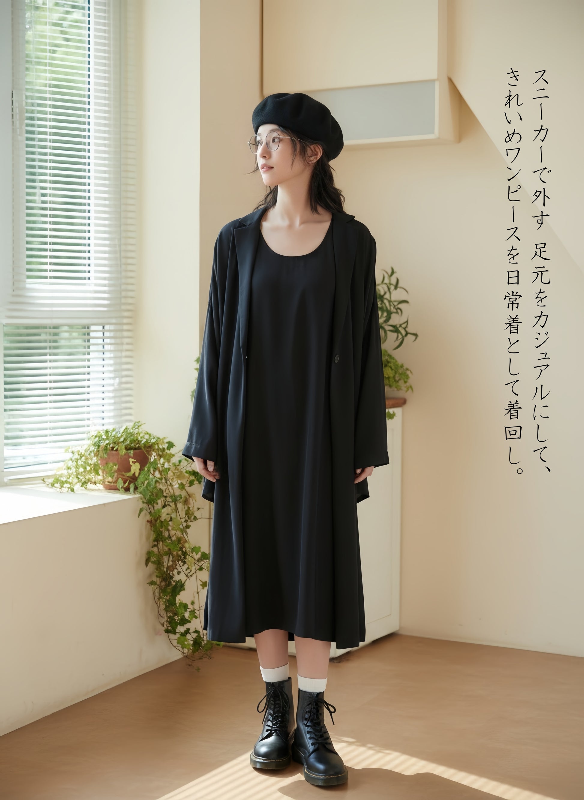 オフィス・通勤スタイル ボタンを閉じたレイヤード風の着こなしは、ドレープ感と相まってきれいめなオフィススタイルに最適です。