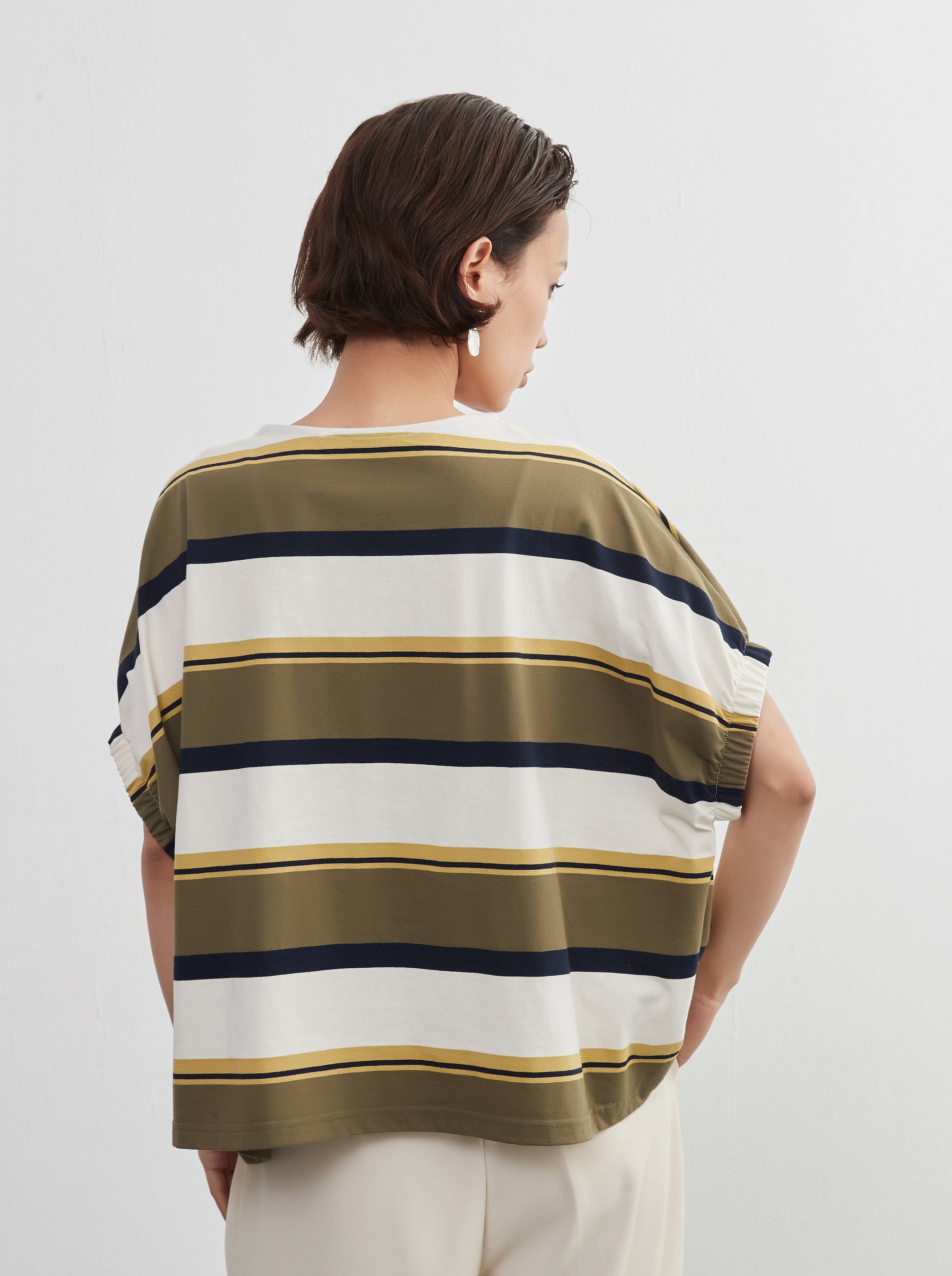 KNXT401-半袖・ボーダーTシャツ・綿100・ドルマンスリーブ・トップス・プルオーバー