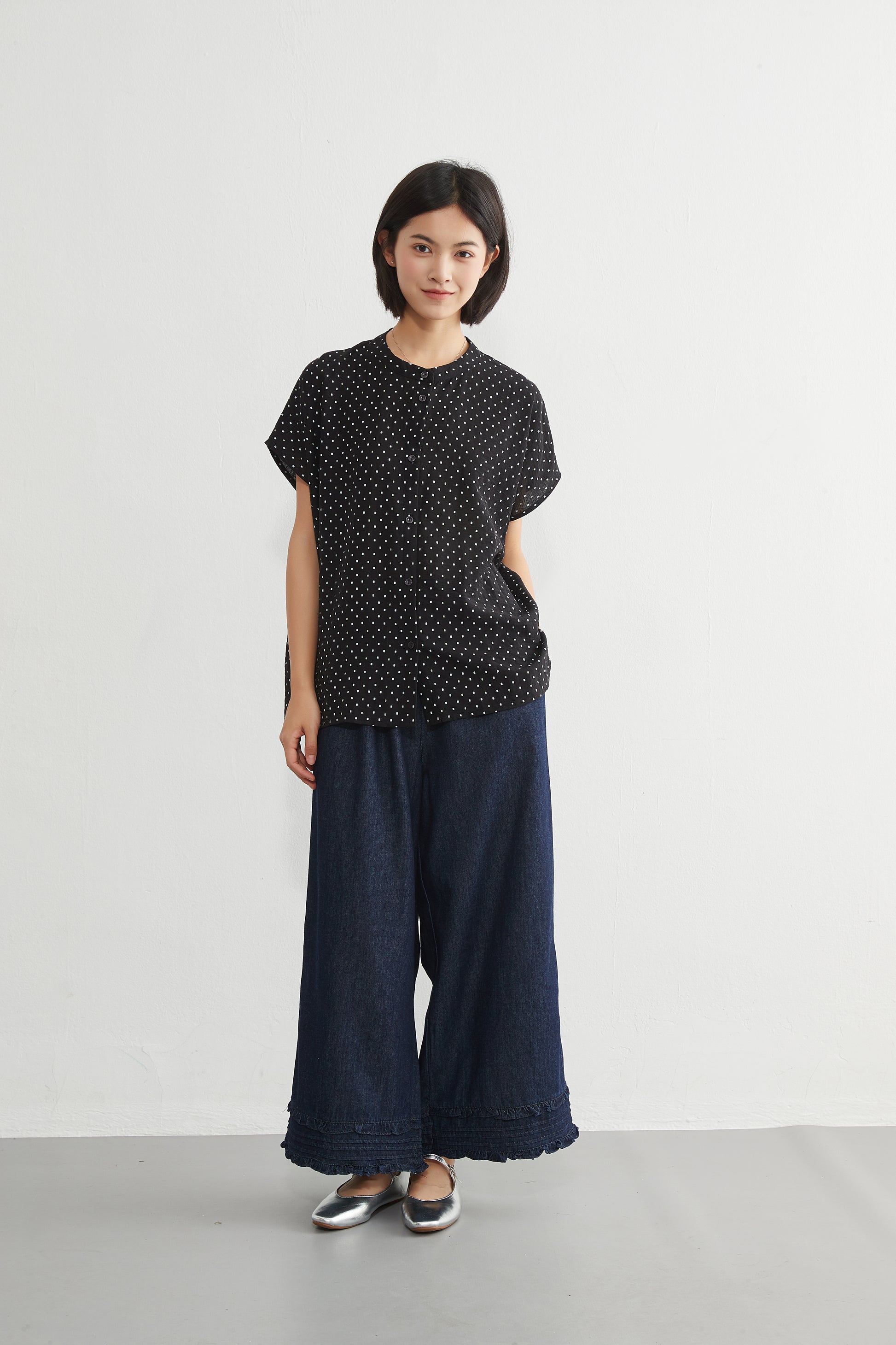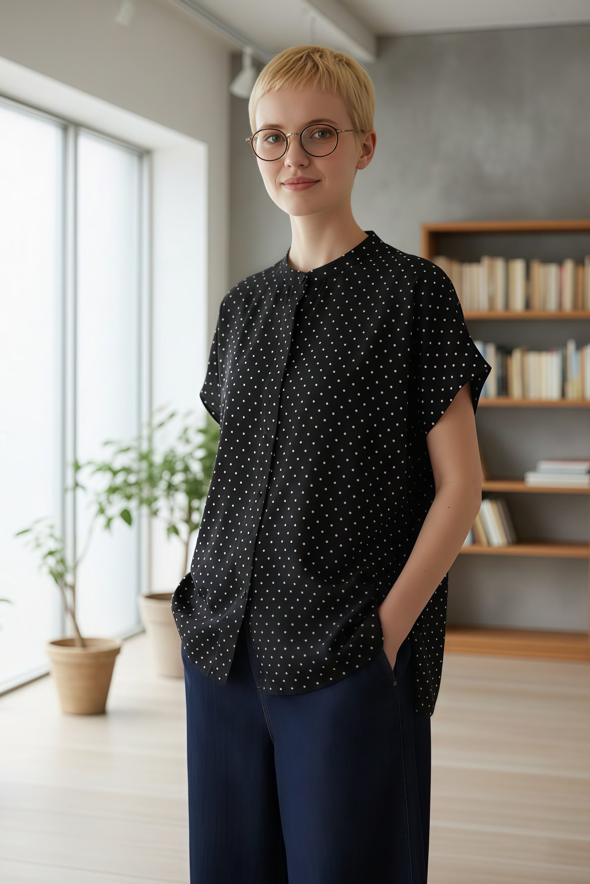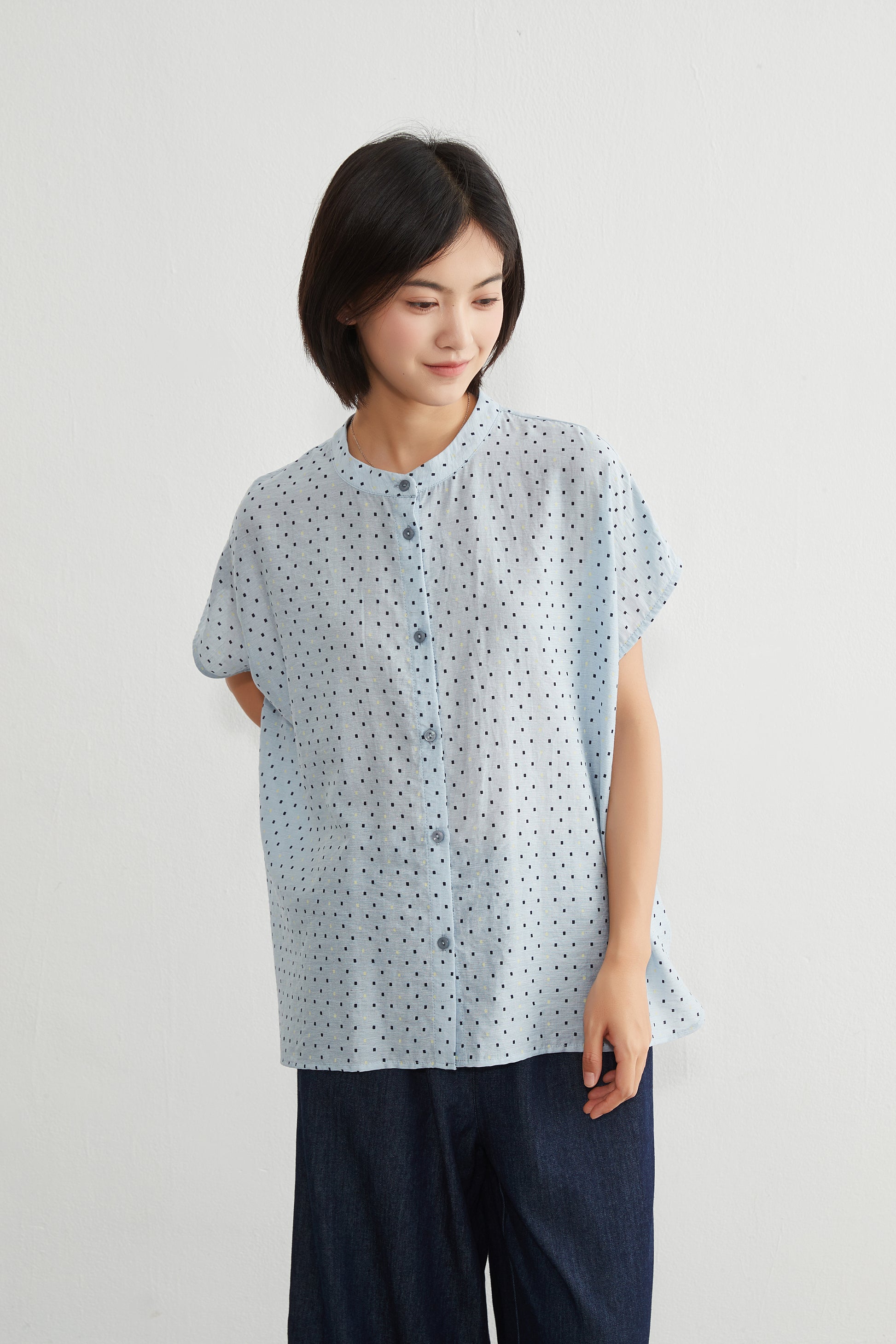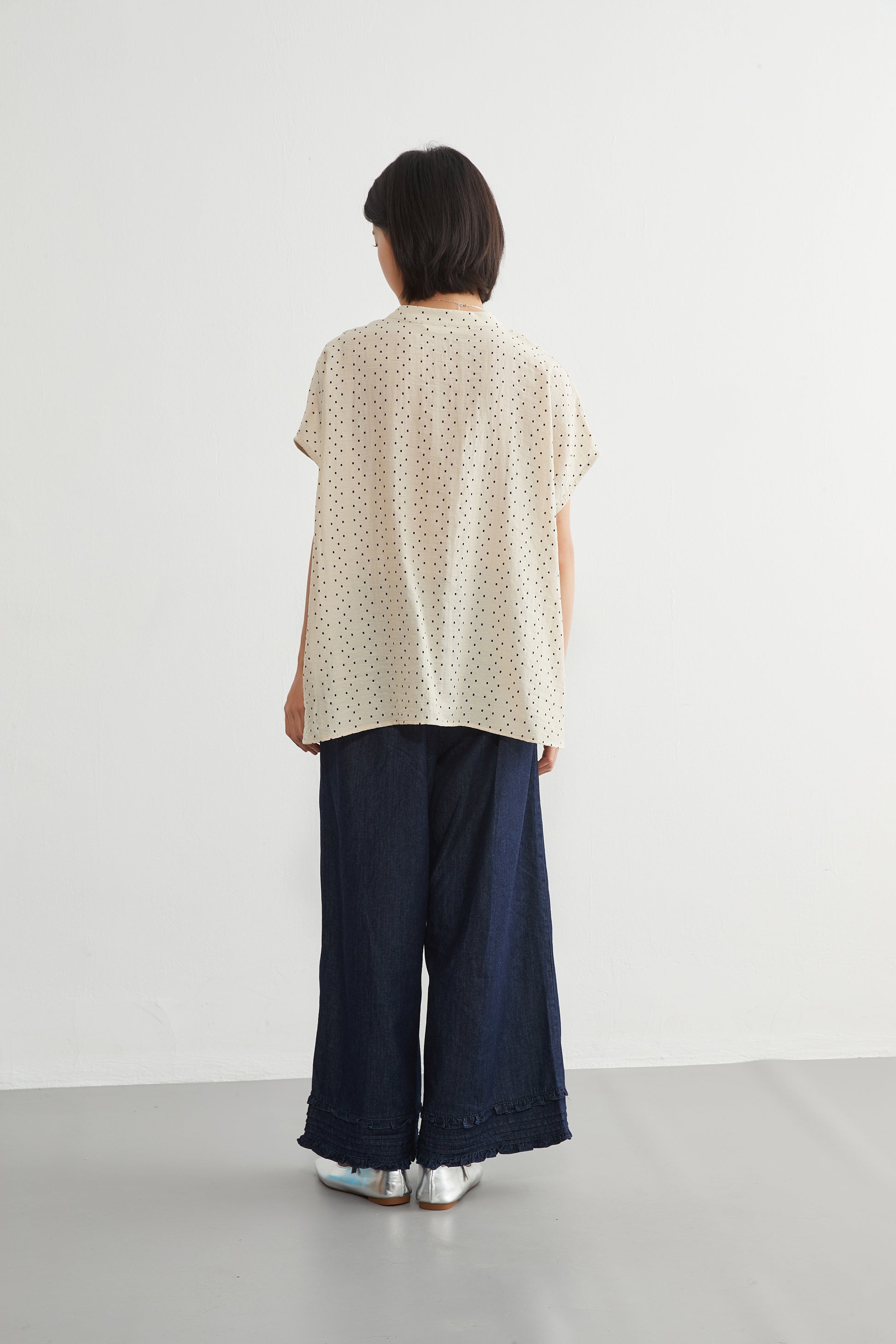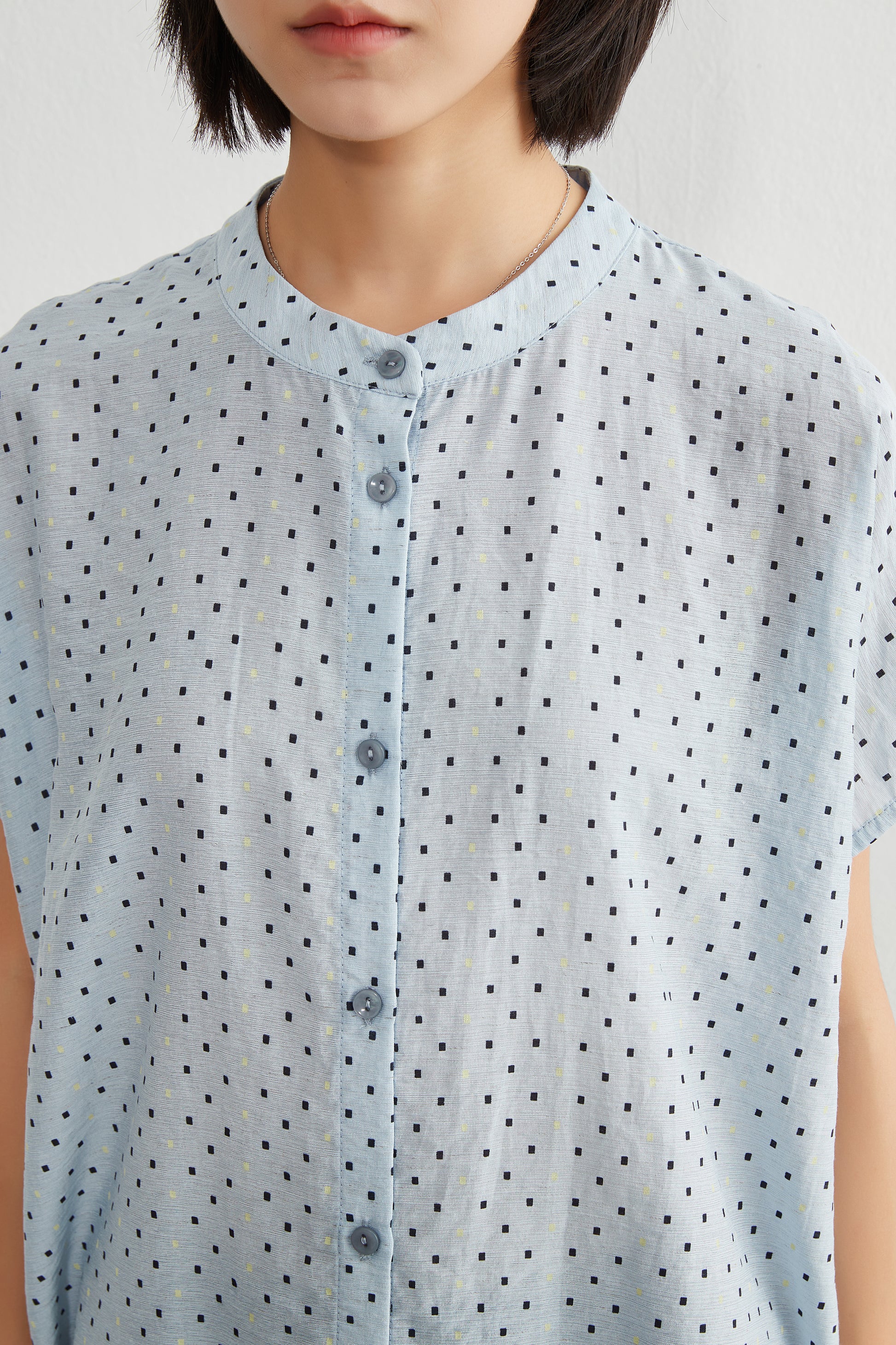 KNGT633・BOXYルーズフィットの小さなスクエア柄半袖ブラウス定番